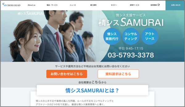 「お客様の課題を解決するサービス」を提供するITコンサルティングカンパニーのクロス・ヘッド株式会社では、情シス支援サービス「情シスSAMURAI」を提供しています。