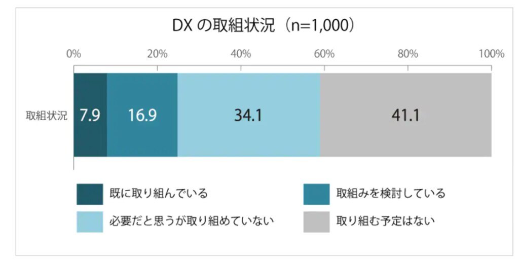 調査対象は1000社に上りますが、中小企業では「4社のうち1社」しかDXに取り組めていないのが現実です。