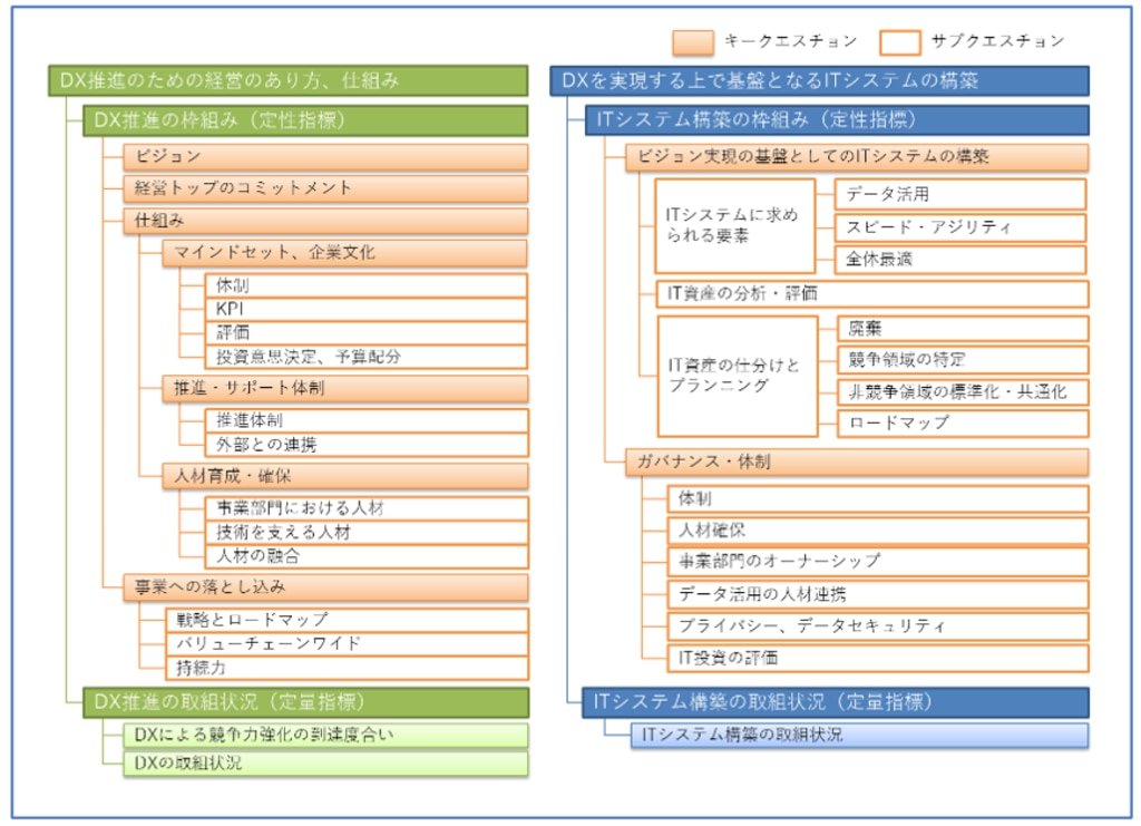 業務アセスメントは、経済産業省が公開している「DX推進指標」と「PFデジタル化指標」に基づき実施するのが有効です。評価には「アセスメントシート」と呼ばれる、自社を評価するためのシートを使用します。