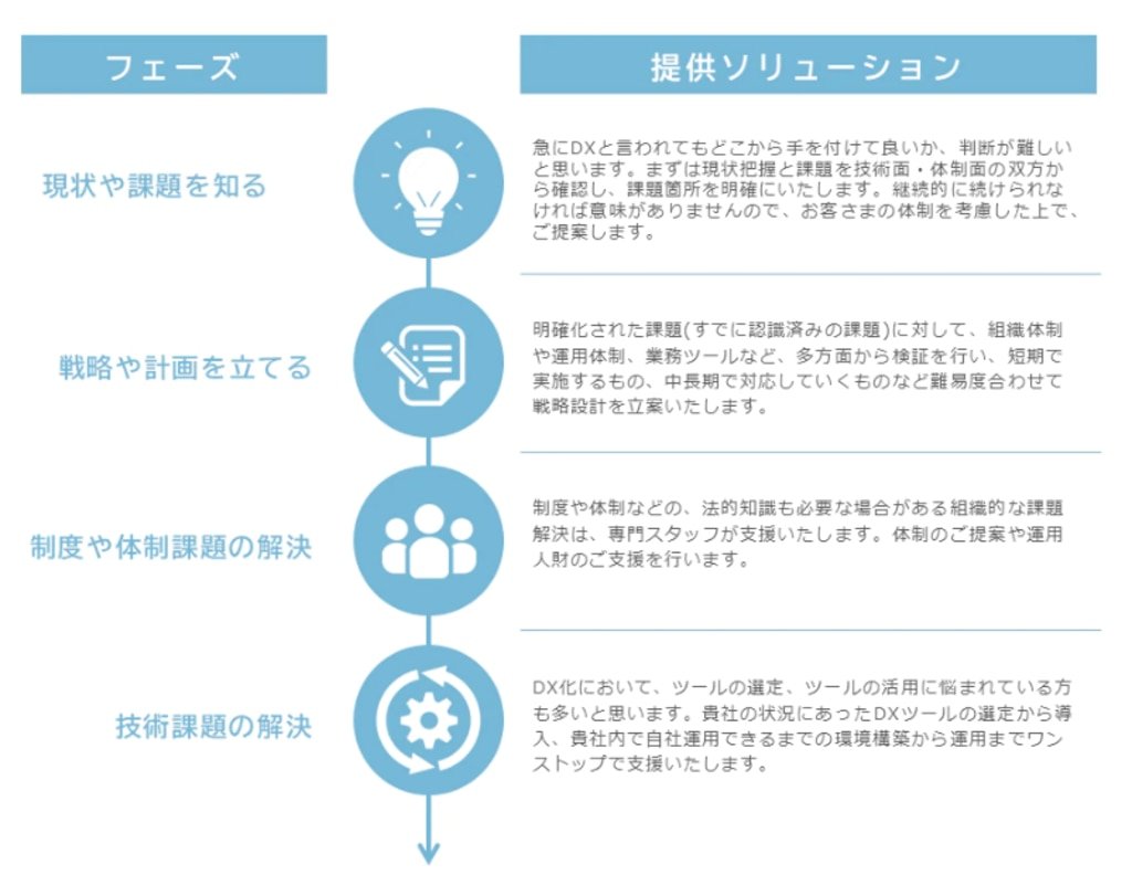 前回の記事でご説明した通り、中小企業のDX推進の課題として、「IT人材・IT投資の不足」「ビジョン策定やロードマップが描けていない」「成長する企業スピードに体制が追い付かない」などが挙げられます。