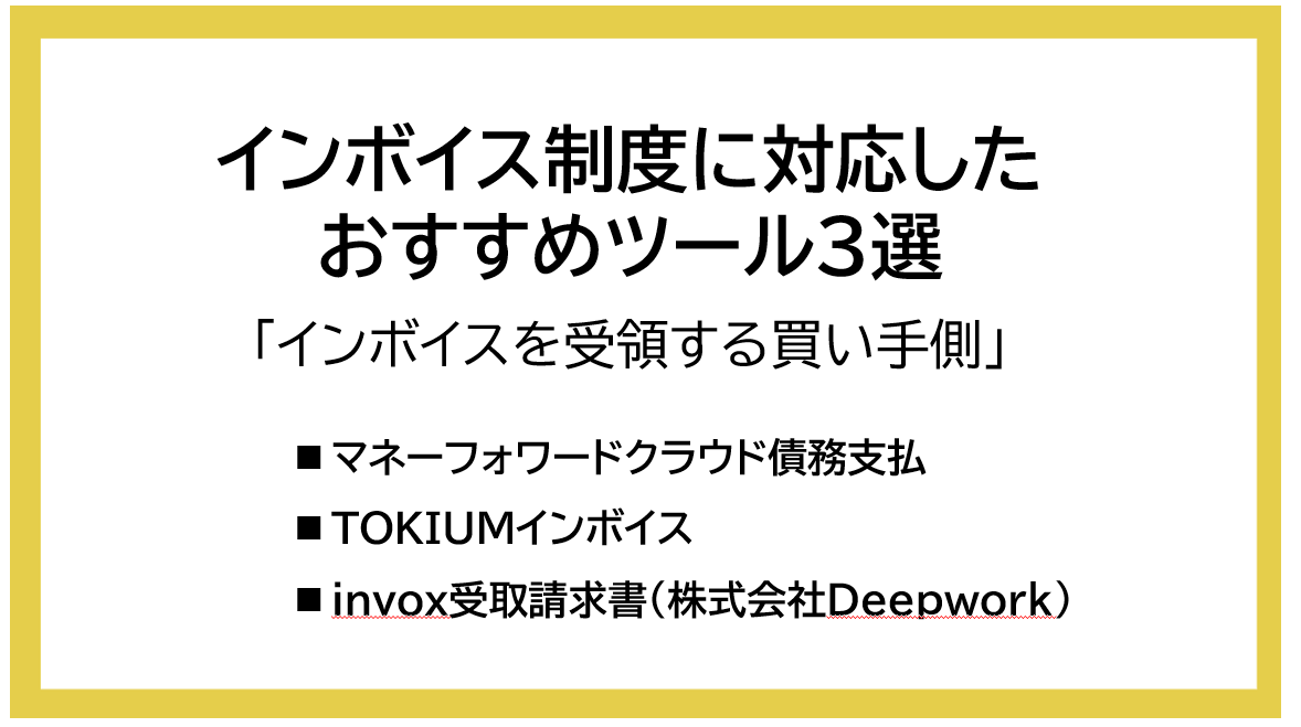 では、インボイス制度に対応するおすすめのツールを紹介します。まず「インボイスを受領する買い手側」に役立つツールを3つ紹介します。