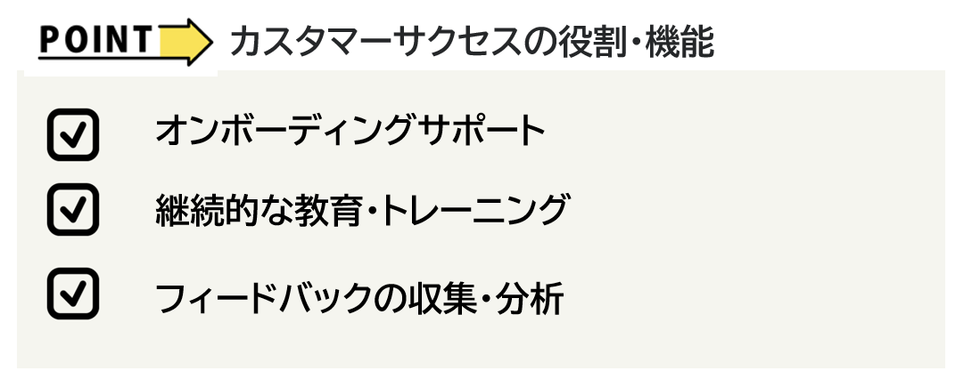 またカスタマーサクセスの機能としては、主に次の3つが挙げられます。