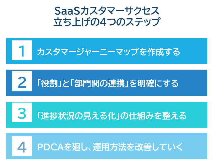 SaaSカスタマーサクセスの立ち上げは、以下4つのステップで進めます。それぞれのステップについて解説します。
