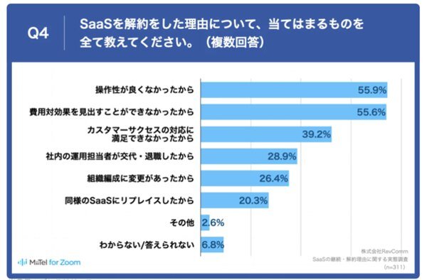 (出典:「「SaaSの継続・解約理由に関する実態調査」が実施」 )
