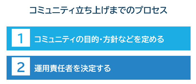 コミュニティを立ち上げる際には、大きくは目的を定め、責任者を決定する、という手順で進めます。それぞれでおこなうべきことや注意点を解説します。