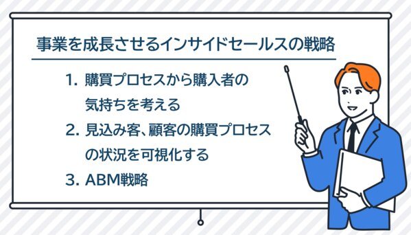 インサイドセールスを成功させるための戦略としては、以下の3つがありました。
