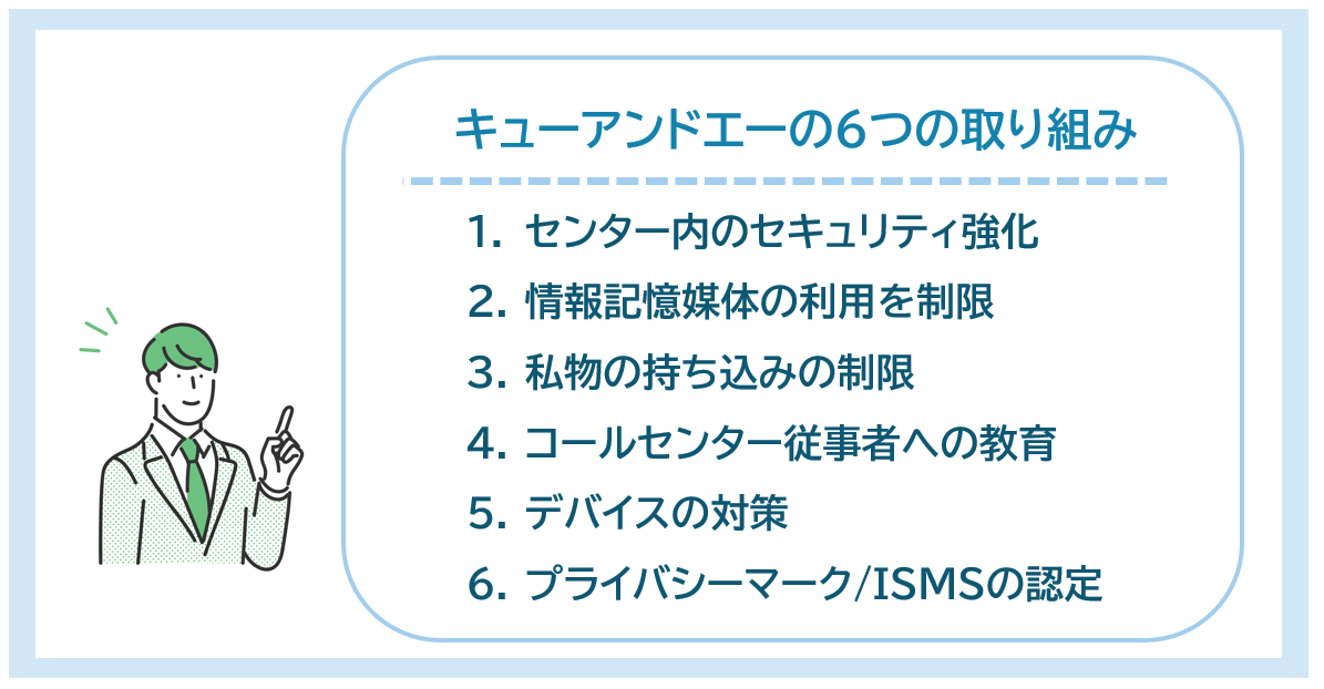 ここでは、当社キューアンドエーが情報漏洩を未然に防ぐためにおこなっている取り組みをご紹介します。