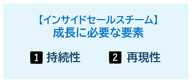 インサイドセールスの成長に必要な要素は、「持続性」と「再現性」と考えます。持続性と再現性の説明の前にまず、インサイドセールスの成功とは何か、について再定義してみましょう。
