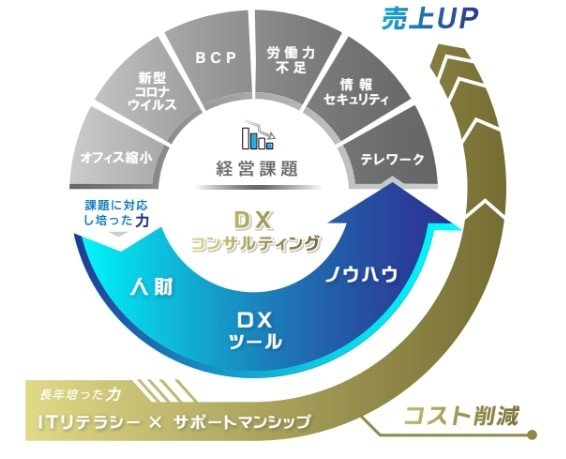 お客さまの「デジタル変革による事業成長への貢献」をコンセプトとし課題解決力に優れたITプロフェッショナルがお客さまに寄り添って、事業成長に貢献してまいります。