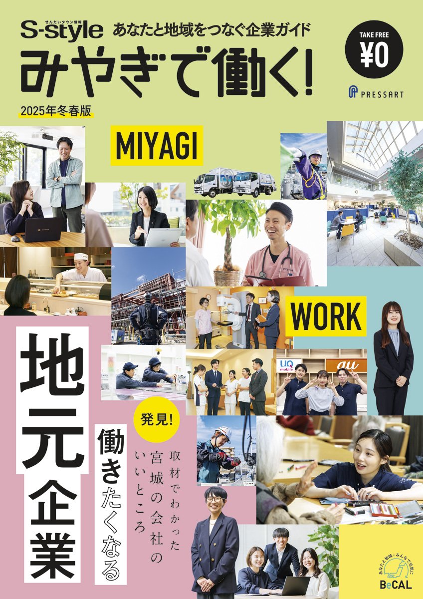 2024年12月16日発刊のせんだいタウン情報「S-style」のフリーマガジン「みやぎで働く!(2025年冬春版)」に当社のお仕事の内容が紹介されました。