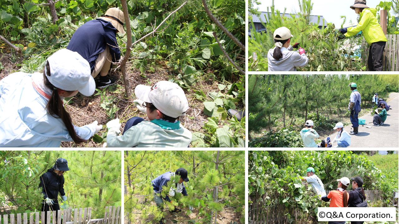 キューアンドエーは、この活動を通じて海岸防災林のメンテナンスの重要性をより深く理解し、これからも「キューアンドエー未来へつなぐ杜」の取り組みが次世代へ引き継がれる自然と共生する未来の実現に貢献できることを願って、従業員と共に防災林の保育活動を続けてまいります。