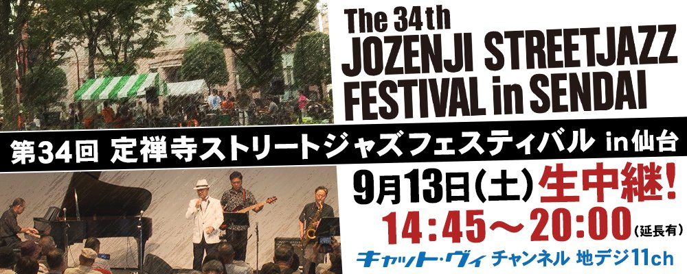 キューアンドエー株式会社は昨年に続き、仙台CATV株式会社のコミュニティチャンネル「キャット・ヴィ チャンネル」が中継する特別番組「第34回定禅寺ストリートジャズフェスティバル生中継」に協賛します。