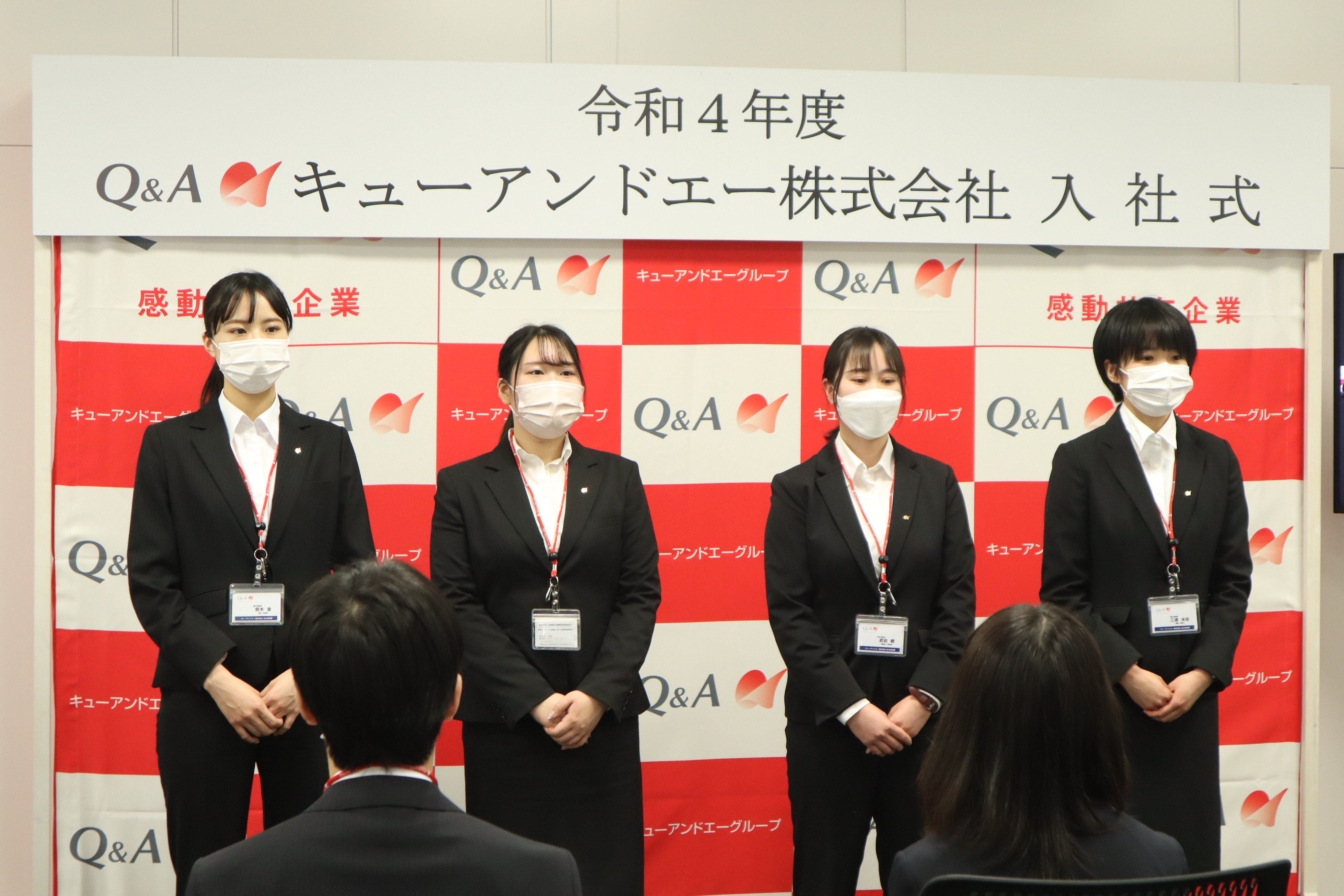 「数年後、新入社員の皆さんが『キューアンドエーを選んでよかった』と思えるように私も頑張ります。一緒にキューアンドエーを盛り上げていきましょう!」
