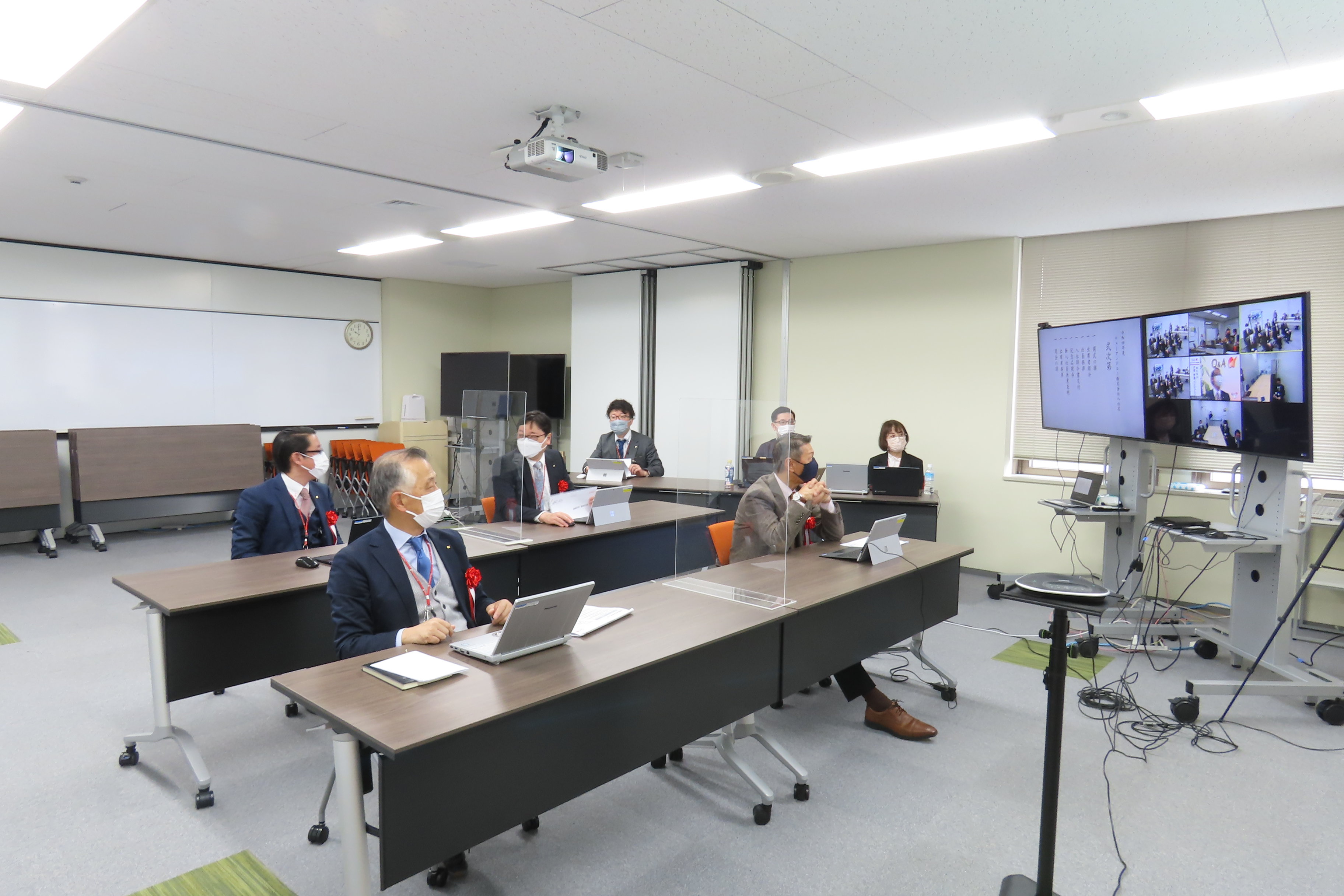 新型コロナウイルス感染症予防対策のため、昨年に引き続き、会場を複数にわけ、ソーシャルディスタンスを確保してのオンライン開催です。メイン会場となる仙台駅前オペレーションセンター(宮城県仙台市)の会議室と、本社(東京都渋谷区)をWeb会議システムで繋ぎました。