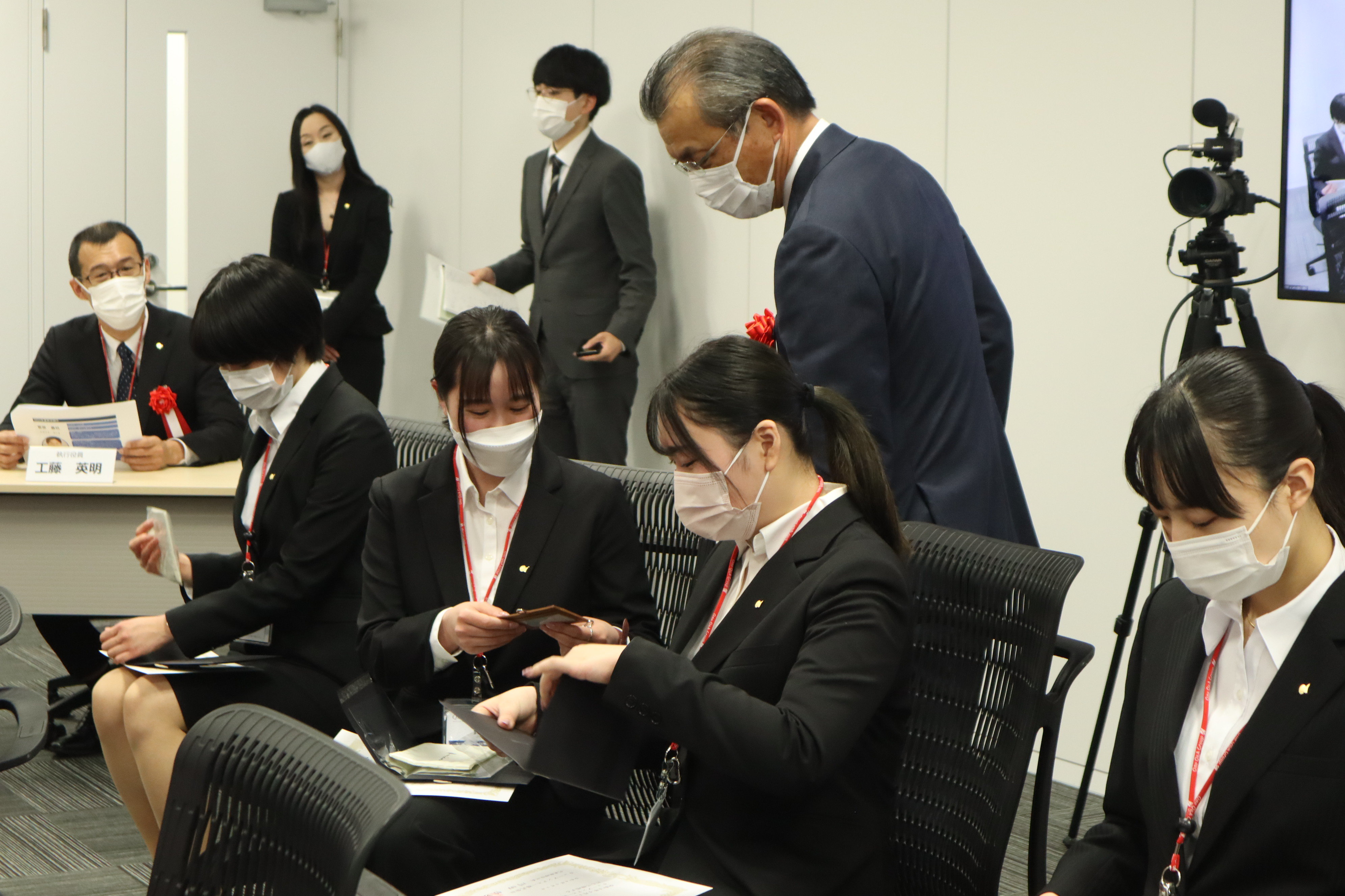本日もリモートのスタイルで入社式を進めていますが、アクリル板やマスクの着用はスタンダードになっています。一方で、新型コロナウイルスによる環境変化の影響もあり、デジタルというキーワードが非常に広まっています。皆さんはいわゆる『デジタルネイティブ』『Z世代』のど真ん中です。『新入社員』『社会人1年目』という立場ではありますが、ある意味デジタルの先頭を切っている世代だと思いますので、ぜひこれまでの経験と個性を発揮して、活躍していただければと思います。」