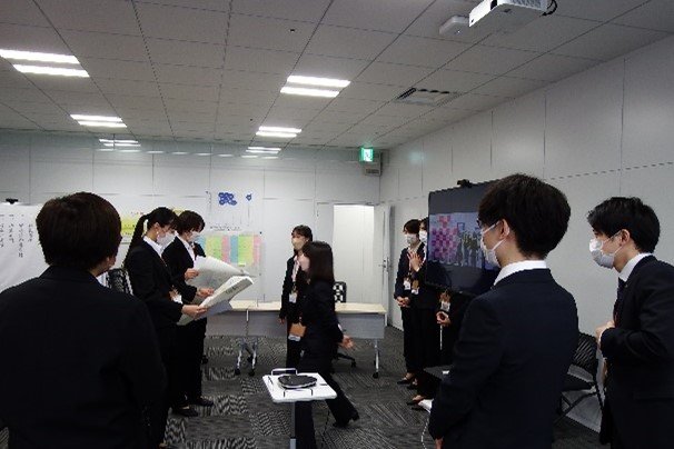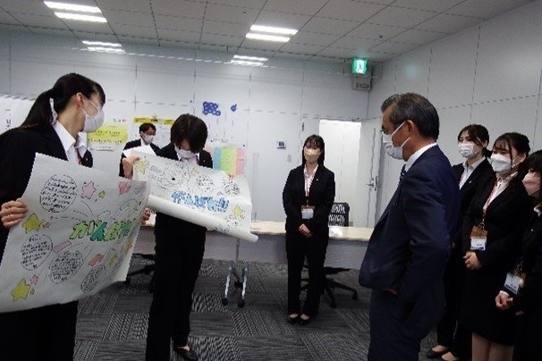 と、メッセージを受け取ったお二人はとっても嬉しそう!その場に居合わせた社長や先輩社員も、総合職7名のサプライズにとっても感動していました。