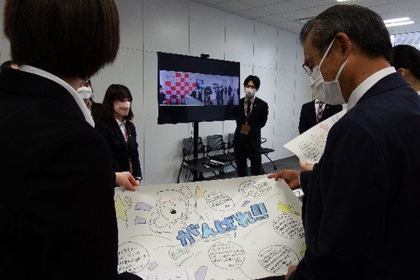 参列した役員と配属先の上長から、配属先が決定したアスリート職2名へ応援のメッセージを送りました。