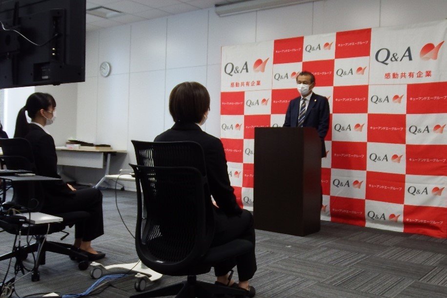 川田社長「今後は、バレーボール選手としての活動と、キューアンドエーでのお仕事の両立を目指していくことになります。アスリートとして過ごす時間のなかで、キューアンドエーという別の場所での触れ合いというのはお二人の成長に必ず意味があるものになるでしょう。スポーツの世界において、自身のスキルを磨くことはもちろん重要ですが、心の成長もプレーに大きく影響してくるはずです。キューアンドエーに関わる時間は何らかの形でお二人がパフォーマンスを発揮するための役に立つのではないかと考えております。バレーボール選手として活躍するための糧として、キューアンドエーでの時間を過ごしてください。」