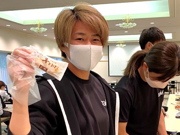 早速、選手の皆さんが朝食時に食べてくださいました。