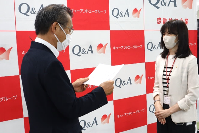 1997年のキューアンドエー創立時より今日に至るまでの25年にわたり当社に勤務されている人財開発部 松本有生さんにご登場いただきました。25年間キューアンドエーを支えてくださっている松本さんに川田社長よりサプライズで感謝状を贈呈しました!
