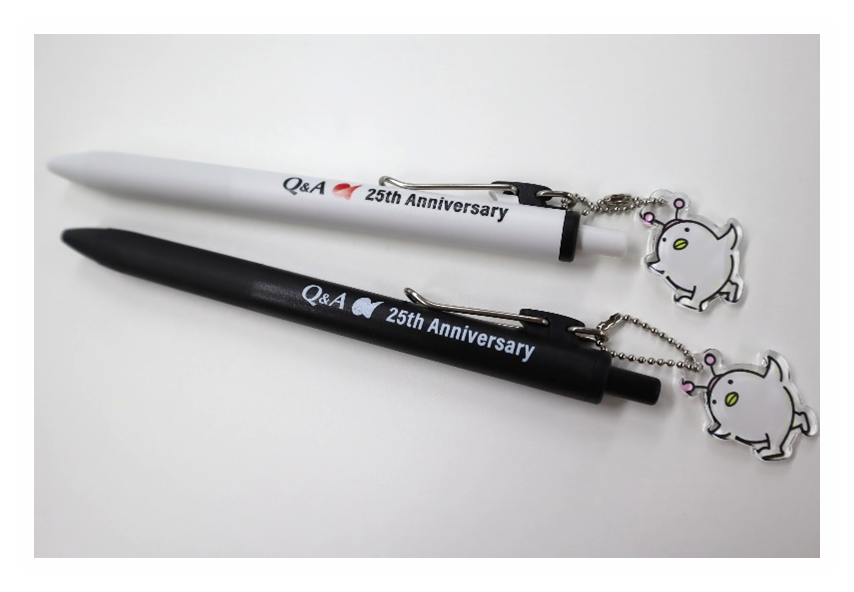 キューアンドエー株式会社は2022年7月1日、創立25周年を迎え、日頃より業務にご尽力いただいている従業員へ感謝の気持ちを込めて、「キューアンドエー株式会社創立25周年 オリジナルキャラクター付きボールペン」 をお届けしました。
