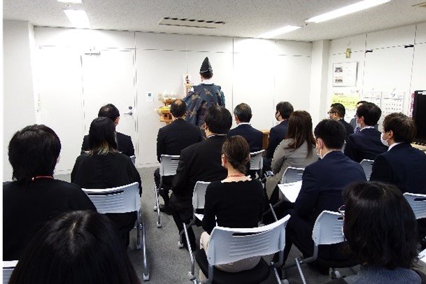 10年前の開所式の際、御祈祷をしていただいた宮司様が今回もお祝いの儀を執りおこなってくださいました。私も「これから先、20周年、30周年と末永くよろしくお願いいたします」の想いをのせて神様に願いを捧げました。