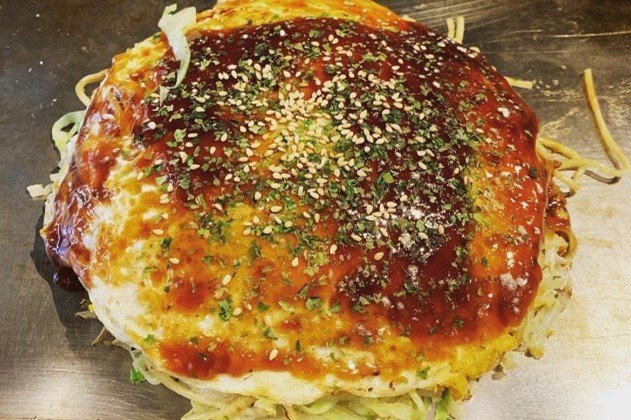 念願のお好み焼きを食べることができました!一緒に行った川田社長はうどんが入ったお好み焼きも食べ、「やっぱりうまい!」とおっしゃっていました。