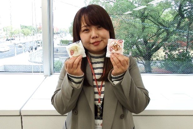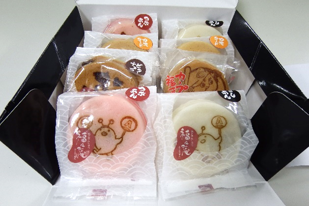 キューアンドエーのキャラクターが刻印されたおまんじゅうを記念品として作りました。担当された熊谷 加奈美さんより、従業員の皆さんへ配布されました。私もいただきましたが、とても美味しかったです。見た目もキュートです。