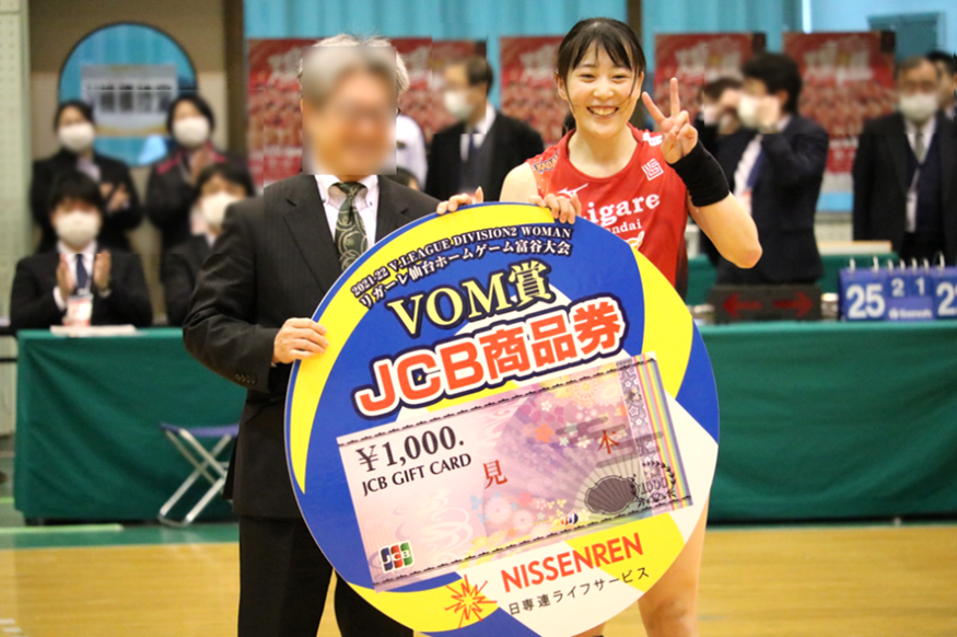 見事勝利し、試合後に加藤彩夏選手はヒーローインタビューを受けました!さらに、VOM賞(V. Leaguer of The Match賞)も受賞しました。