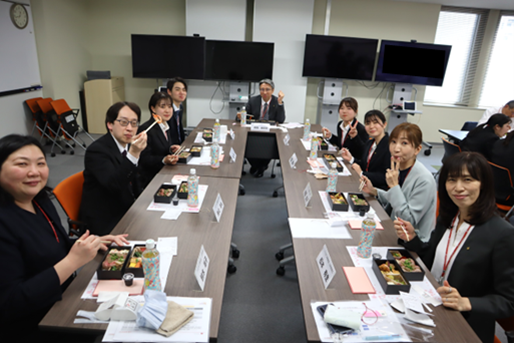 入社式とは雰囲気がガラッと変わり、美味しいランチを食べながら、いろいろなお話ができたようです。