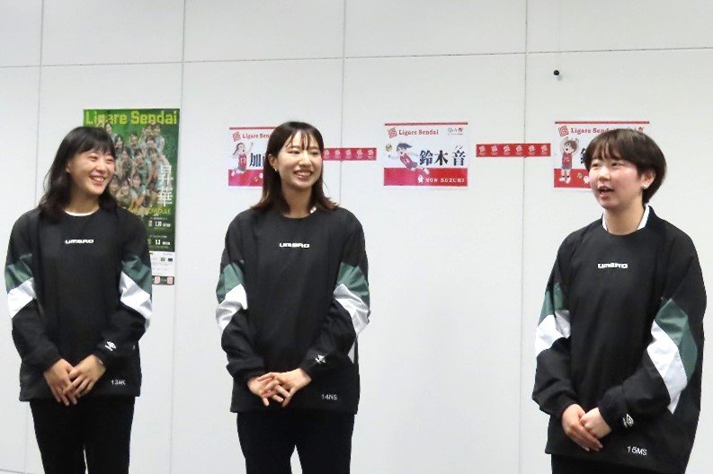 終盤にはキューアンドエー リガーレ仙台応援団から応援ソングに合わせ応援メッセージをいただき、最後に選手3名からシーズン開幕に向けての決意の言葉を発表していただきました。