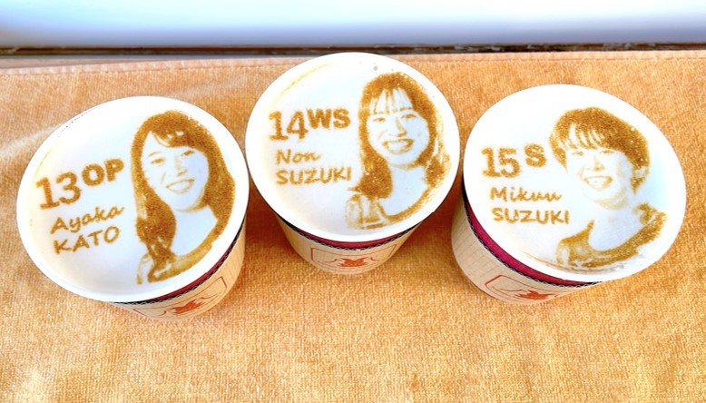 加藤彩夏選手、鈴木音選手、鈴木美空選手のラテアートを注文しました。