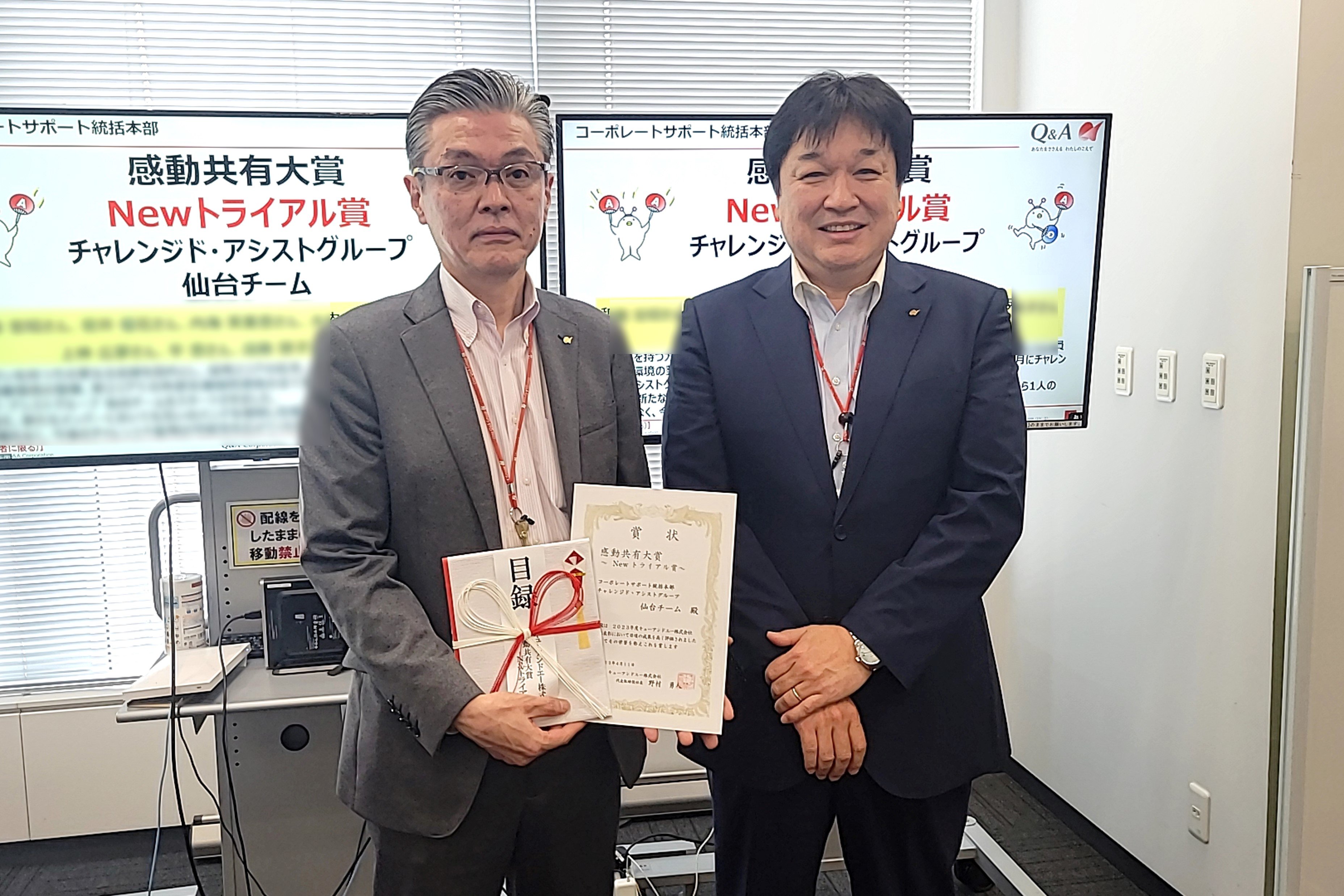 会社に対する貢献および業績に表しづらい優れた成果について評価し、賞賛することを目的として、長年にわたりおこなわれています。また、特に優れたものに対しては、当社の企業理念をもとに名付けられた「感動共有大賞」が授与されます。今回推薦されたすべての候補者を対象に審議会で選考され、2つのチームが受賞しました。