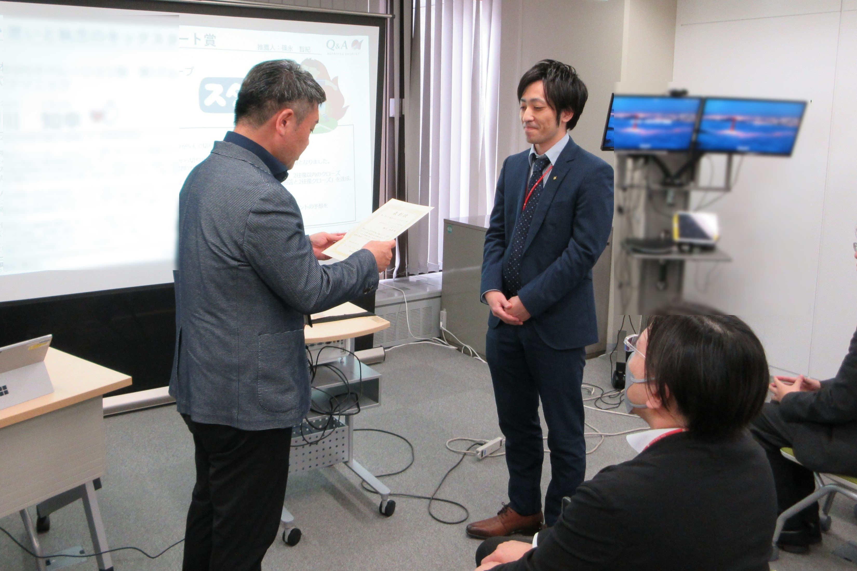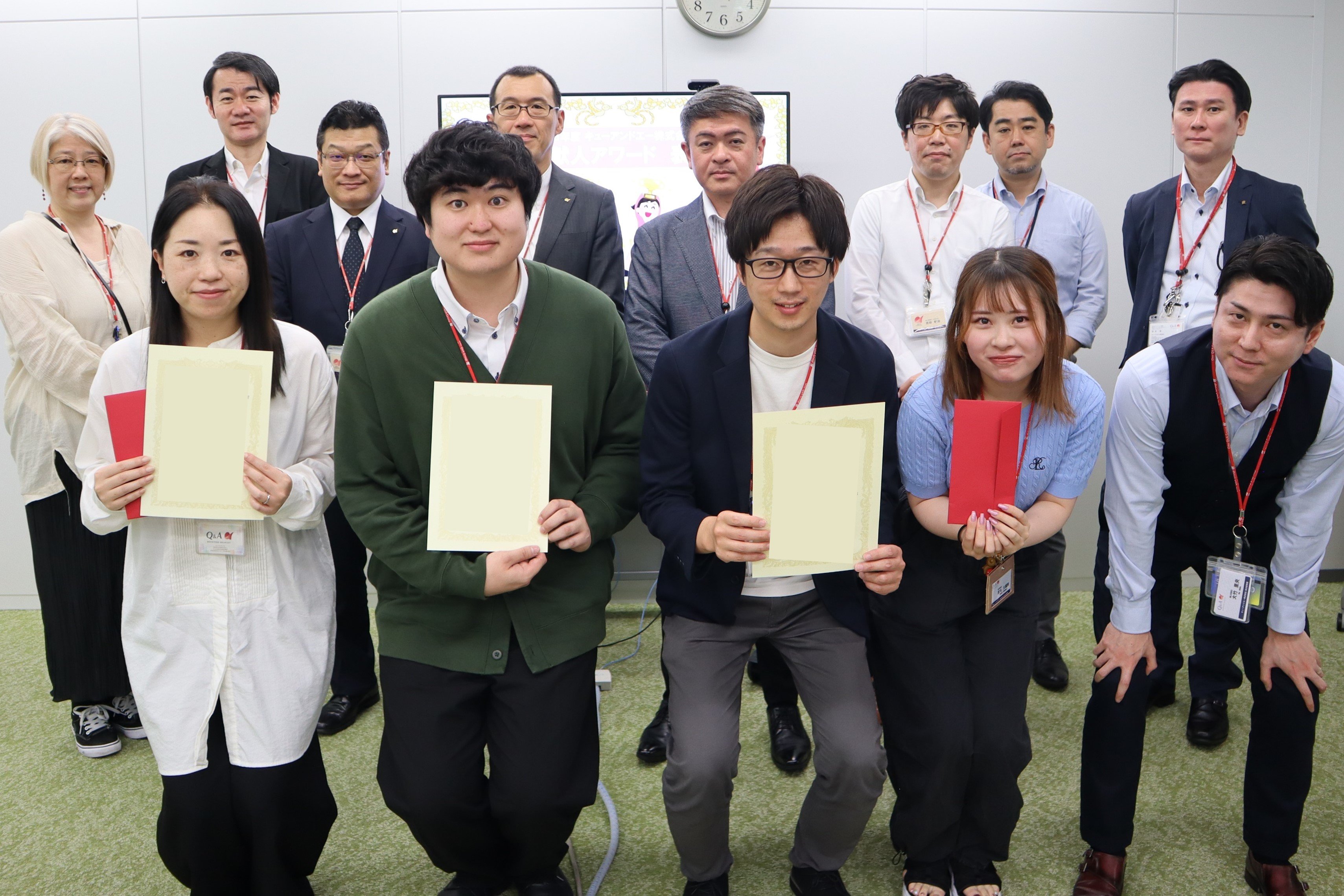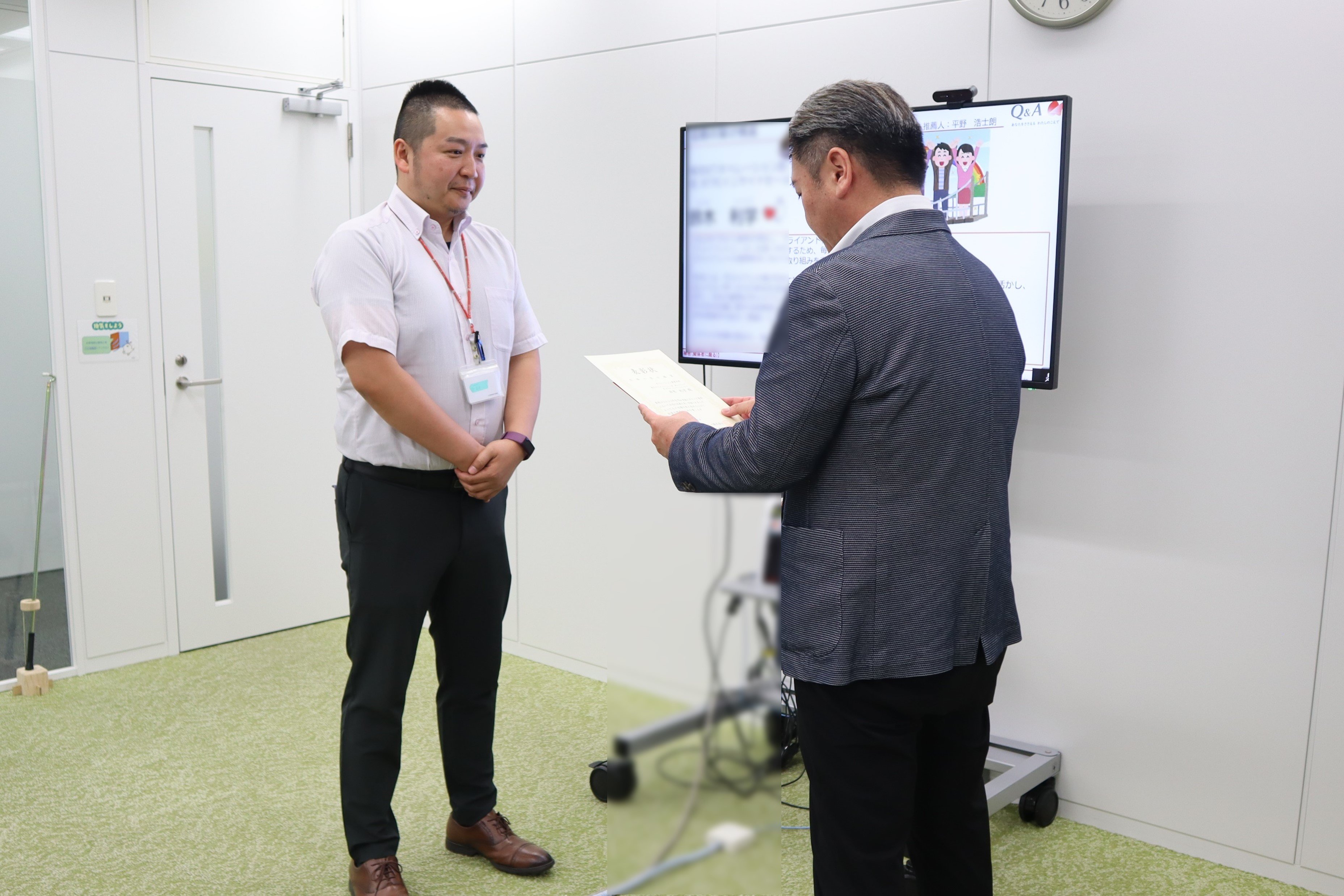 大阪オペレーションセンターをスタートし、福岡オペレーションセンター、初台オペレーションセンター、仙台トラストオペレーションセンター、仙台青葉オペレーションセンター、仙台駅前オペレーションセンターへ畠山取締役常務、増尾副本部長が足を運び、受賞者へ表彰状と目録をお渡しました。
