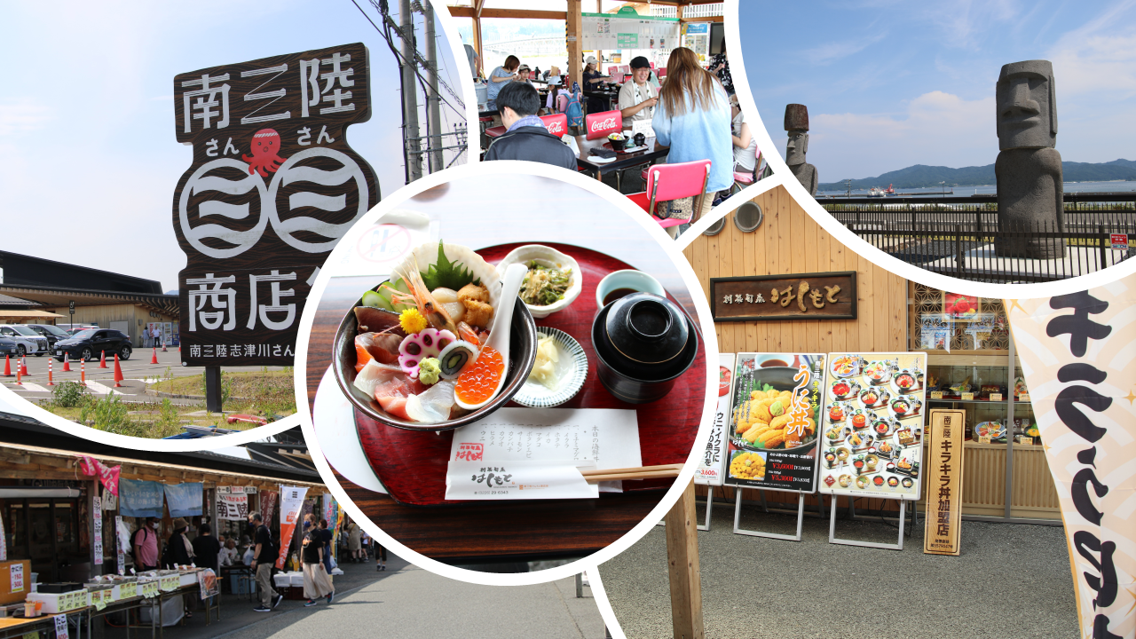 昼食は、ちょっとした活動のご褒美です。東日本大震災後にオープンし、南三陸町で人気の観光スポットである「駅の道さんさん南三陸」に移動して、昼食を兼ねた休憩時間です。昼食は、地元でとれた海鮮丼。ここではキラキラ丼として有名な品で、どの品も鮮度が高い絶品なランチでした。