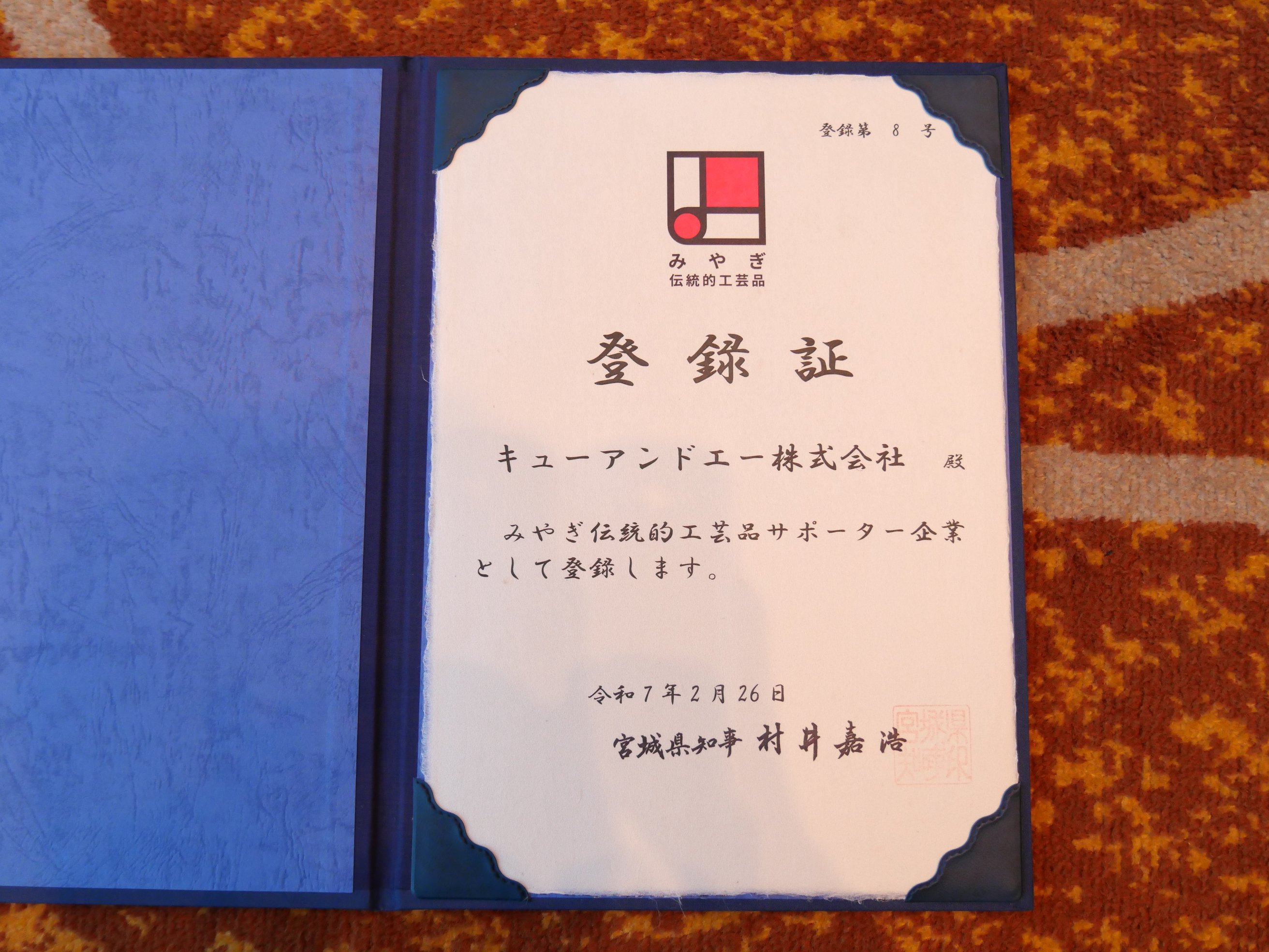 キューアンドエーは宮城県が伝統的工芸品の普及に積極的に取り組む「みやぎ伝統的工芸品サポーター企業」に8社目として認定登録されました。