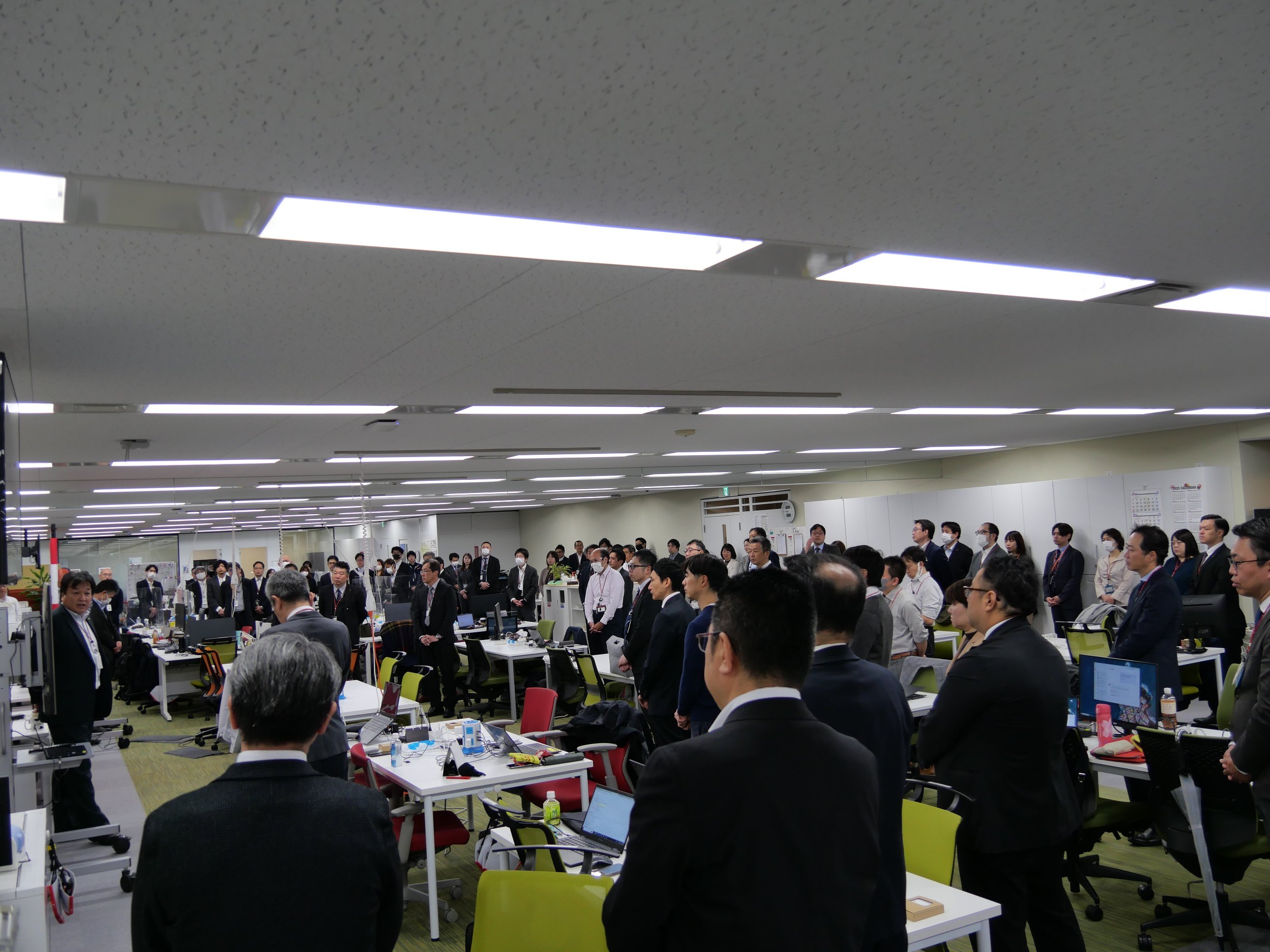 当社は4月1日にグループ会社のディー・キュービックと統合し、これに伴い、全拠点をオンライン中継しながら全社朝礼を開催しました。