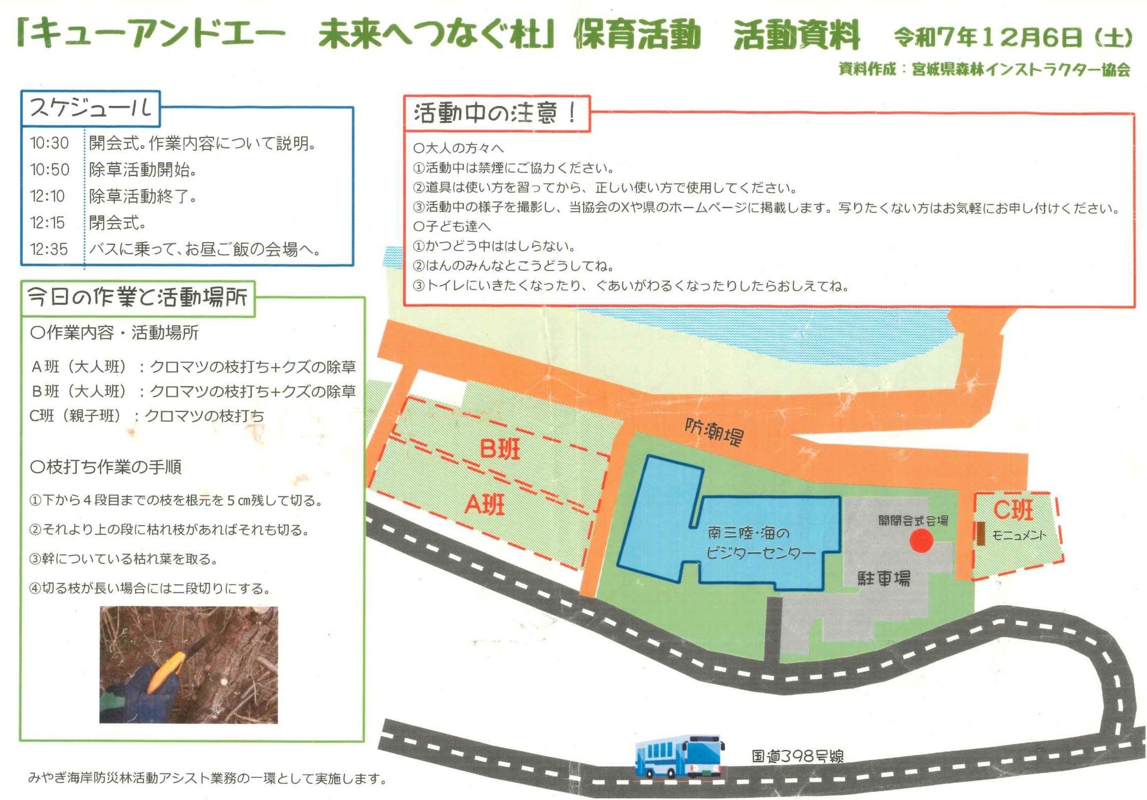 先日、宮城県南三陸町のクロマツの海岸防災林保育地「キューアンドエー未来へつなぐ杜」での保育活動に参加してきました。