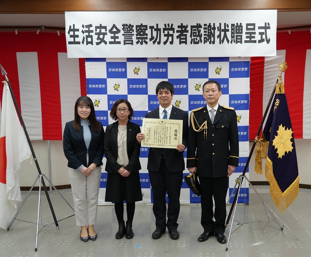 サイバー防犯の継続的な取り組みで宮城県警より感謝状をいただきました