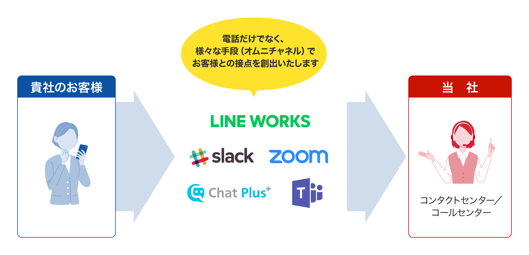 各センター毎にそれぞれ特徴を持っており、お客さまのニーズによって柔軟にご選択いただけます。また、ICTテクニカル系の知識だけでなく、各種申込受付や顧客管理、保険補償系の窓口等、幅広い範囲で対応可能です。